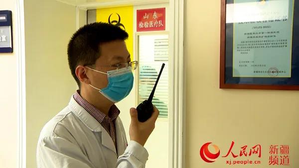 山东省支援新疆核酸检测队领队李和楼(右一)。