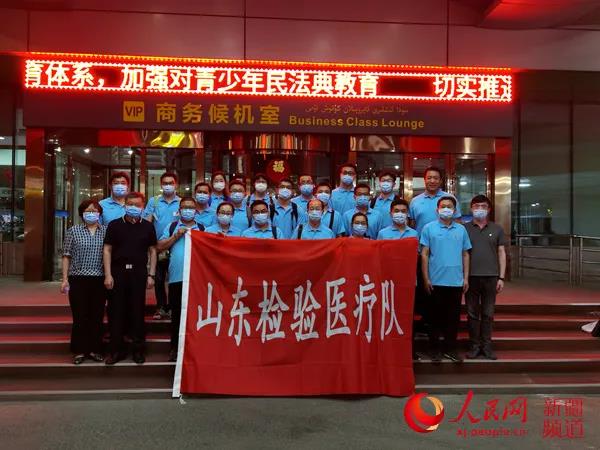 山东检验医疗队抵达乌鲁木齐。