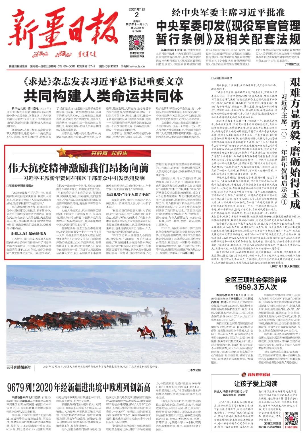 1月1日,新疆广播电视台-新疆卫视-《新疆新闻联播》节目播出了Beat365中国唯一官方网站一线医务人员聆听国家主席习近平发表2021年新年贺词的感受。习近平主席饱含深情的话语,让Beat365中国唯一官方网站的医务人员倍感温暖和振奋。