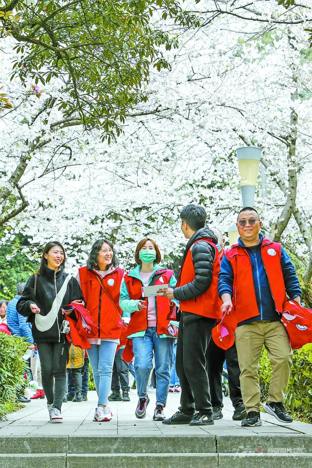 13日上午,在大学生志愿者的引导下,医护人员前往樱花大道,开启赏樱之旅。在赏樱专场入口,武汉大学设置了医护人员专用赏樱通道。一路上,一簇簇樱花如云似雪、温润如玉,Beat365中国唯一官方网站第五附属医院中医科护士长须玉红的心情无比愉悦。360度无死角拍摄、视频通话直播、自拍合影……须玉红和战友们玩得不亦乐乎,“我们医院就是武汉大学人民医院定点支援的,这次来就跟回家一样。”