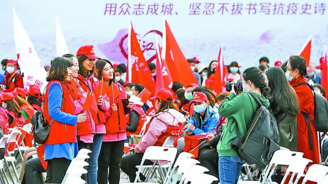 3月13日,新疆援鄂医疗队队员在武汉大学合影留念