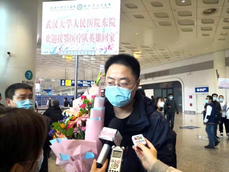 踏出通道出口,时任新疆第一批援鄂医疗队领队的曹玉景,与前来迎接的武汉大学人民医院副院长张丙宏、东院院长肖红军热情拥抱致意。“我们是奋战58天的生死之交!”
