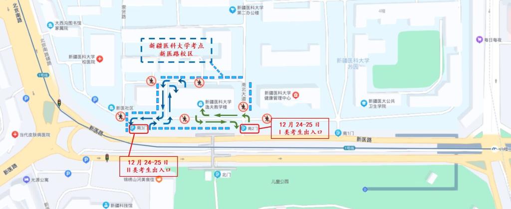 (1)Ⅰ类考生:从新医路校区南二门(天桥下)进入考点;