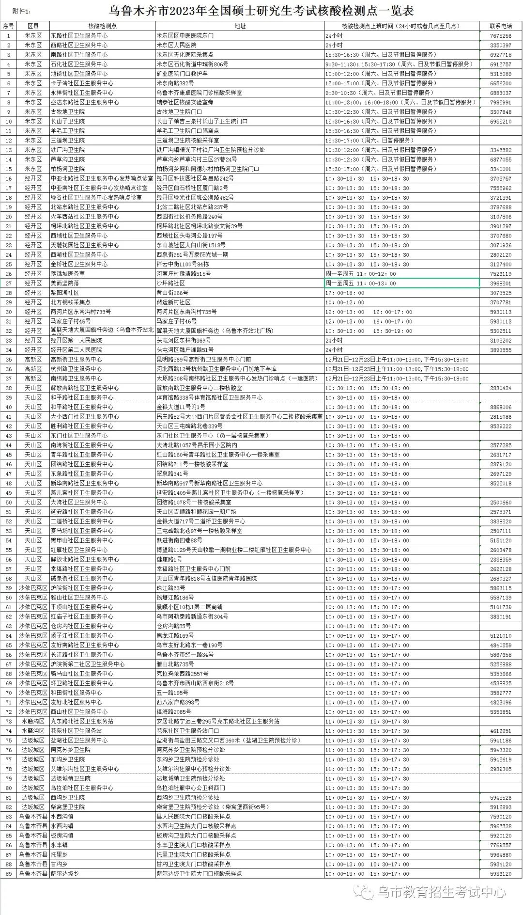 关于乌鲁木齐市2023年全国硕士研究生招生考试考生核酸检测工作的温馨提示