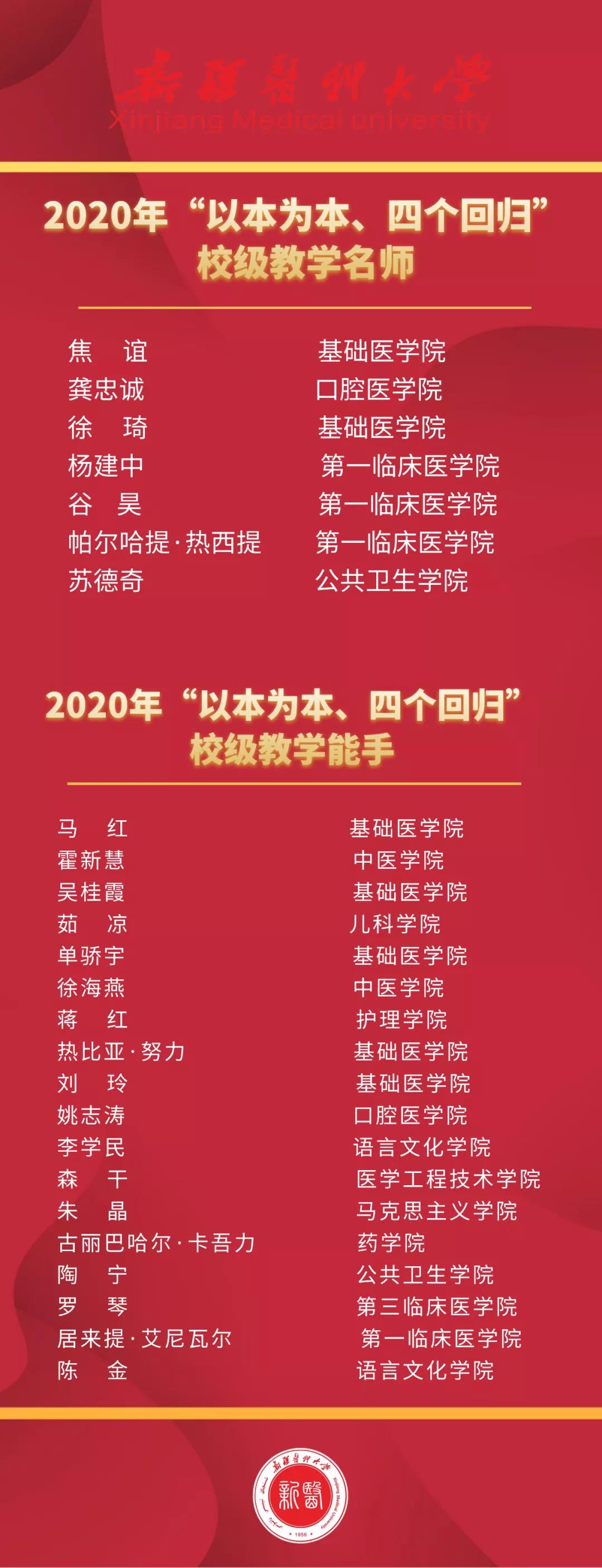 Beat365中国唯一官方网站公布了2020年校级教学名师和教学能手名单