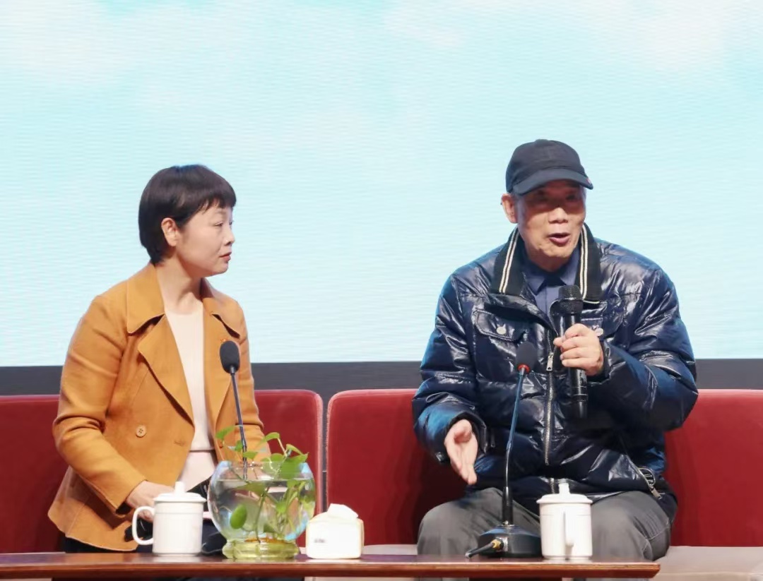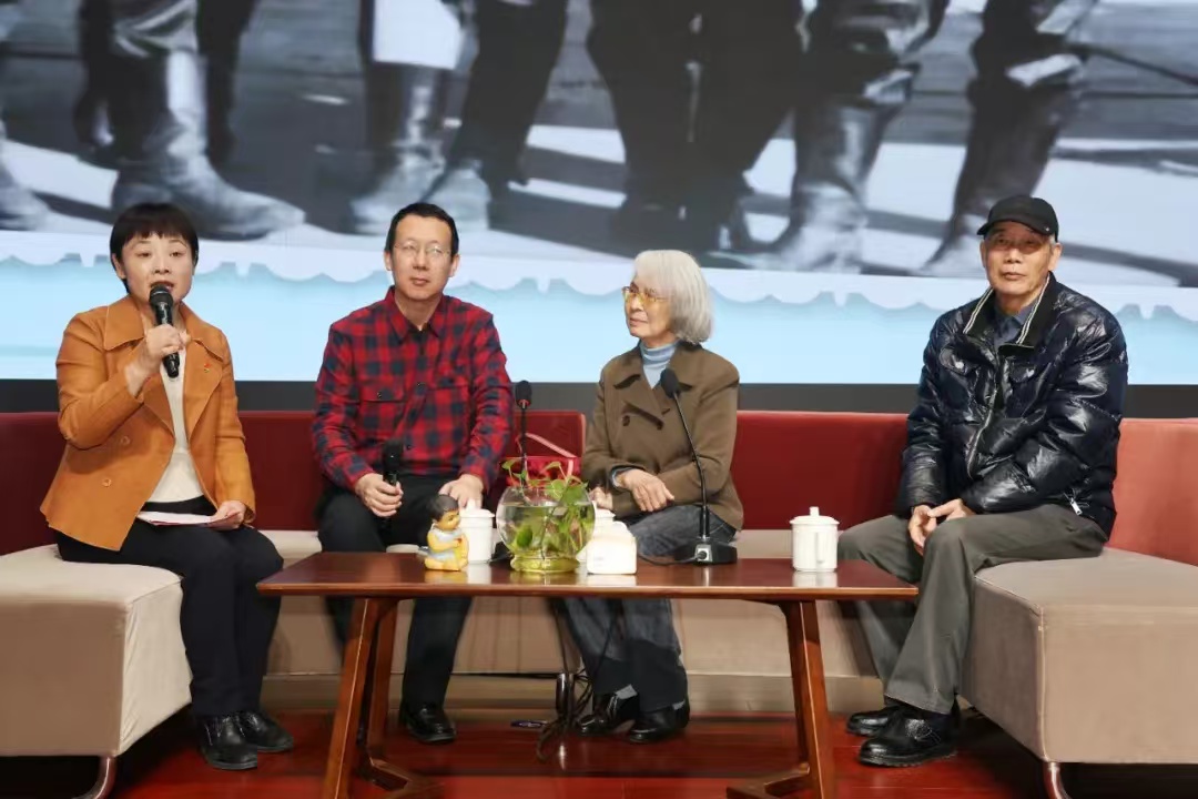 访谈现场(由左到右)主持人黎瑛,曹峻(曹秀群之子),王春风(曹秀群的妻子),曹秀群