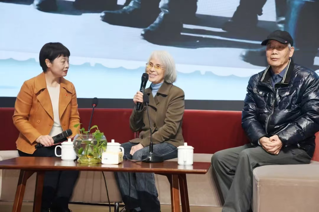 访谈现场(由左到右)主持人黎瑛,王春风(曹秀群的妻子),曹秀群